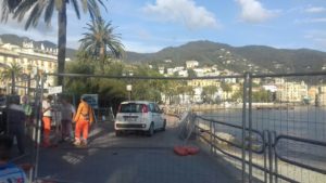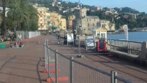 Rapallo. Hanno preso il via oggi a Rapallo i lavori di installazione del cantiere per le tubazioni del nuovo depuratore. Il lungomare pedonale è chiuso dalla zona del Castello fino al molo dei traghetti. Dal molo alla spiaggia dei Cavallini è transennato a ridosso del mare e l’altra metà è libera, anche se in seguito dovrà essere interdetto completamente.