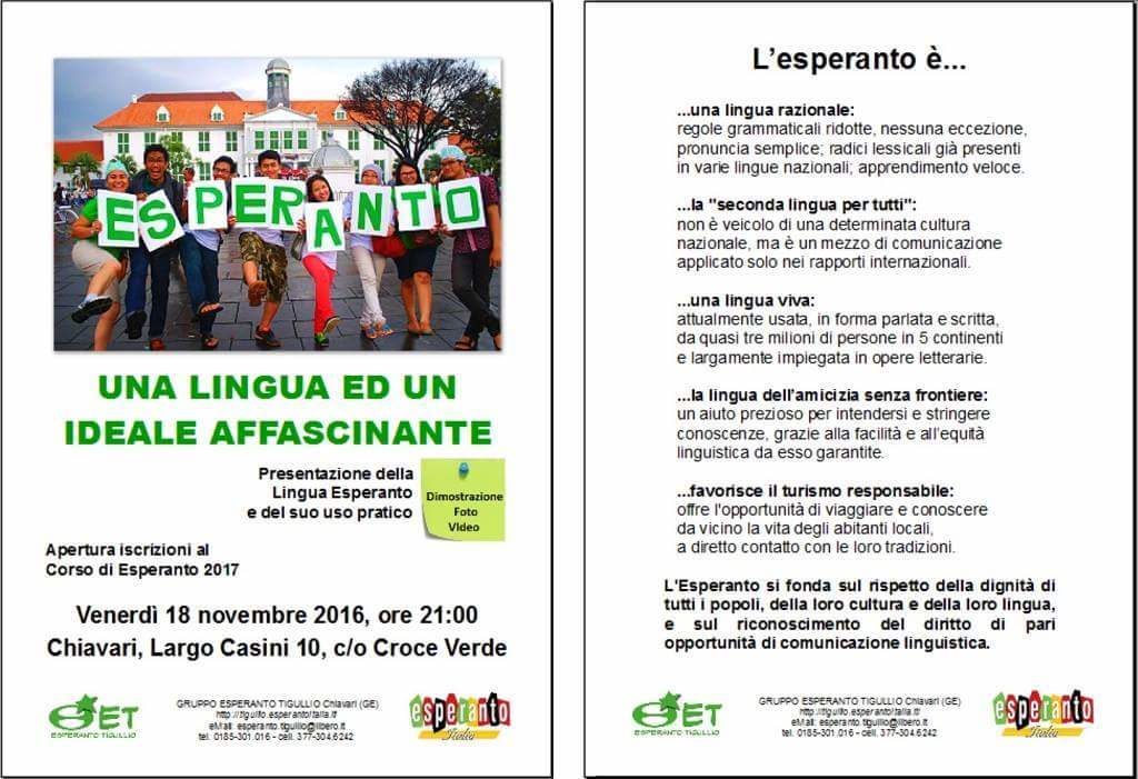 Chiavari. La presentazione della lingua esperanto e del suo uso pratico è prevista domani, venerdì 3 novembre, a Chiavari, alle 20.45, nella sala riunioni della Croce verde, in largo Casini.