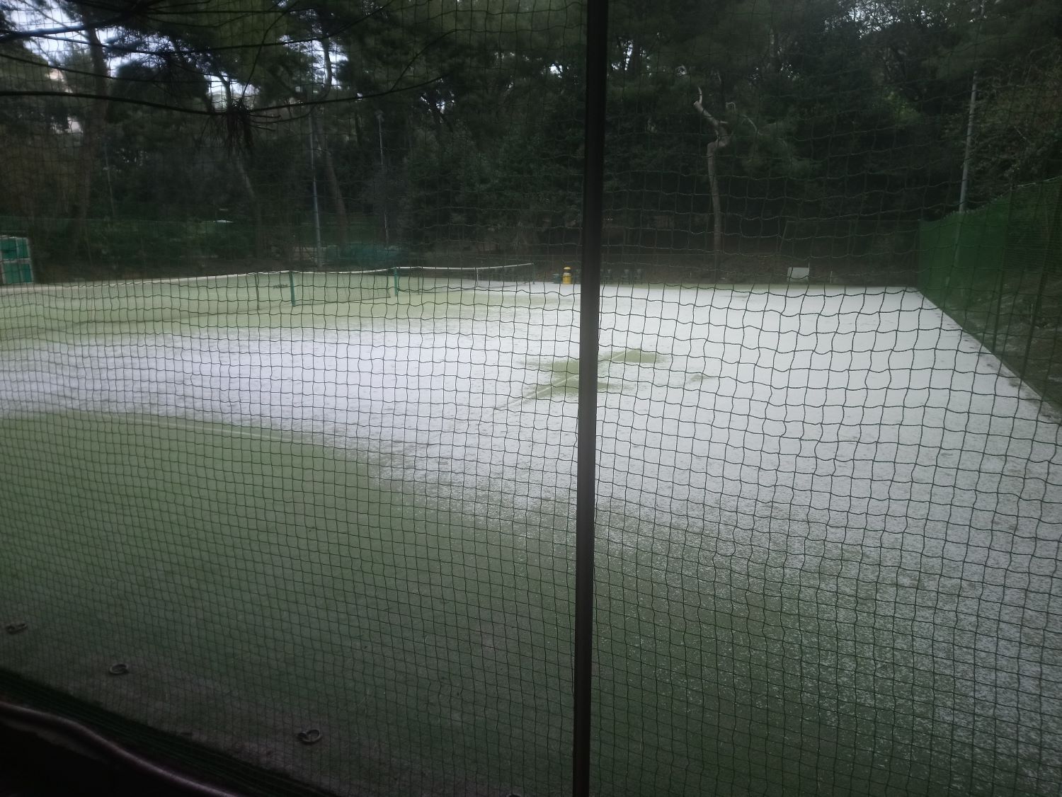 In tarda mattinata, dopo che il maltempo ha dato una tregua, la mini ruspa (bobcat) ha iniziato a lavorare per rifare il manto in terra rossa.