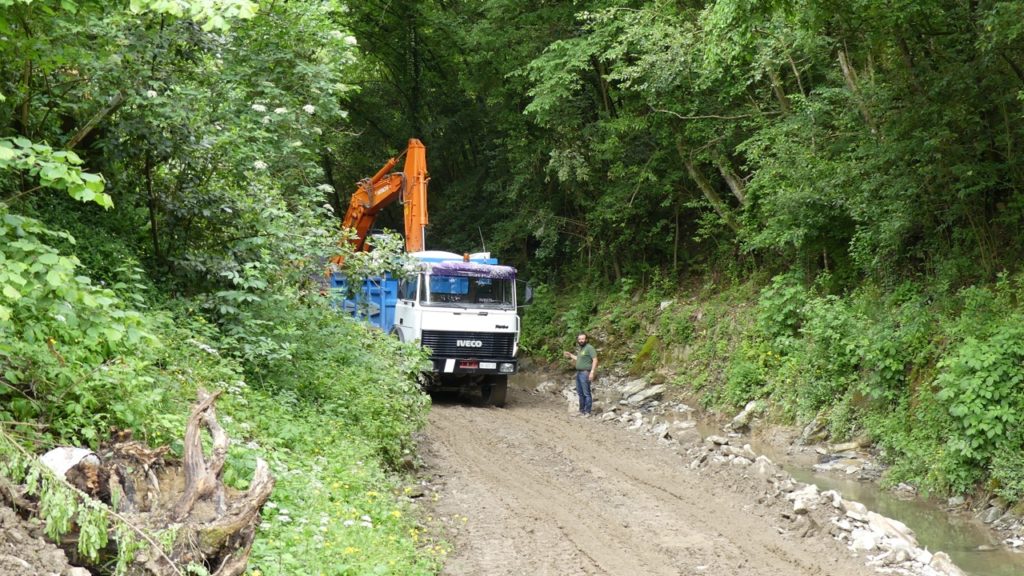 Sulla spiaggia di Ghiaia si è anche provveduto a stendere le pietre, ammucchiate, durante l’inverno, alla foce del torrente.