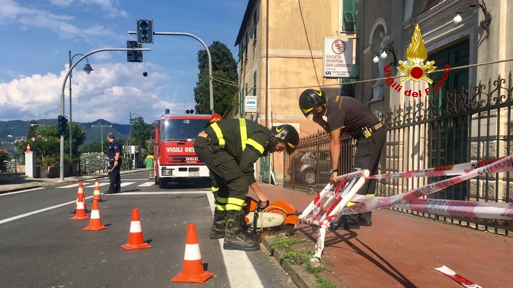 Ecco, qui, le immagini scattate dai vigili del fuoco durante le operazioni, svoltesi a San Lorenzo della Costa, nel territorio di Santa Margherita, lungo la via Aurelia, sabato pomeriggio, attorno alle 16. “Una vettura che percorreva via San Lorenzo sia Costa, per cause in via di accertamento, ha urtato una ringhiera e un palo semaforico, rendendoli pericolanti e instabili”, riferiscono i vigili del fuoco. Quindi, “la ringhiera è stata tagliata con il moto disco ed il palo, prima di essere rimosso, è stato imbragato e sostenuto dalla autogru giunta dalla sede centrale. Successivamente tagliato e adagiato in zona sicura. Non si lamentano feriti”.