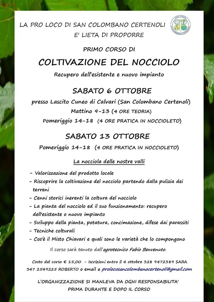 San Colombano Certenoli. La Pro Loco di San Colombano Certenoli organizza il primo corso di coltivazione del nocciolo.