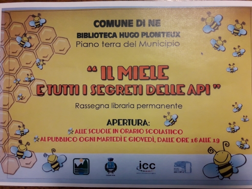 la rassegna libraria “Il miele e tutti i segreti delle api” allestita nella biblioteca comunale “Hugo Plomteaux”.
