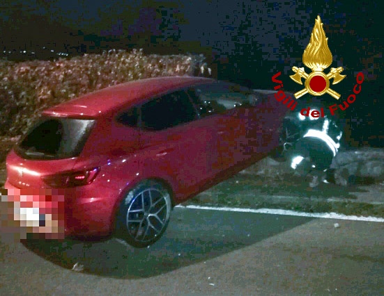 Auto contro muro, rompe tubo del gas. Intervento del pompieri