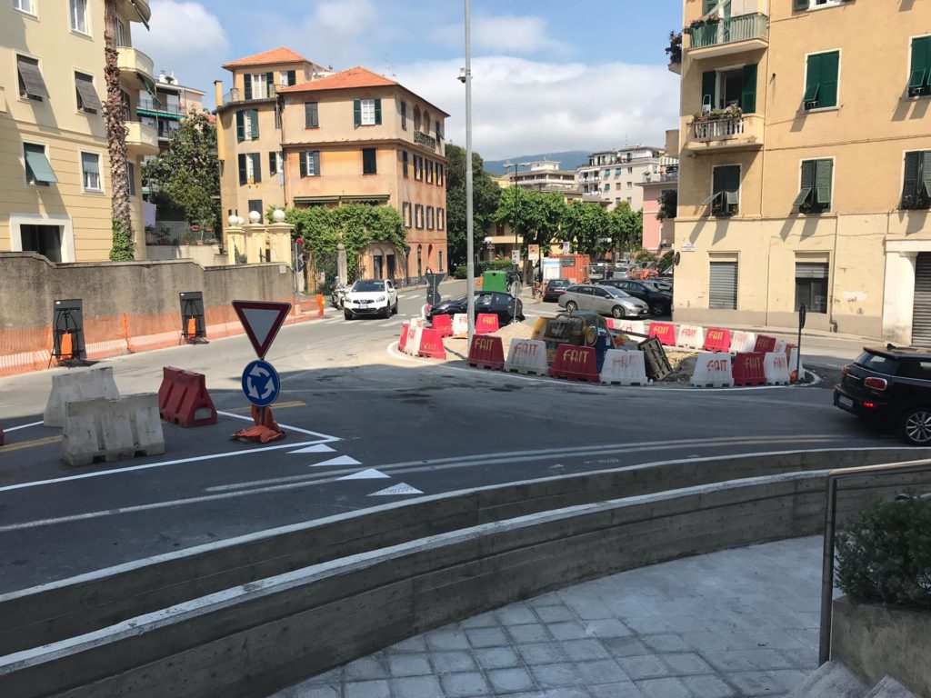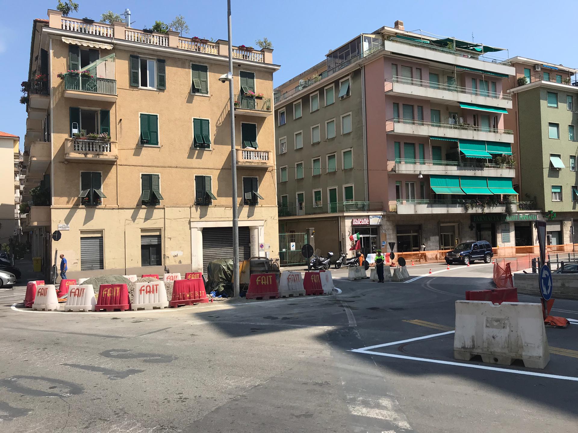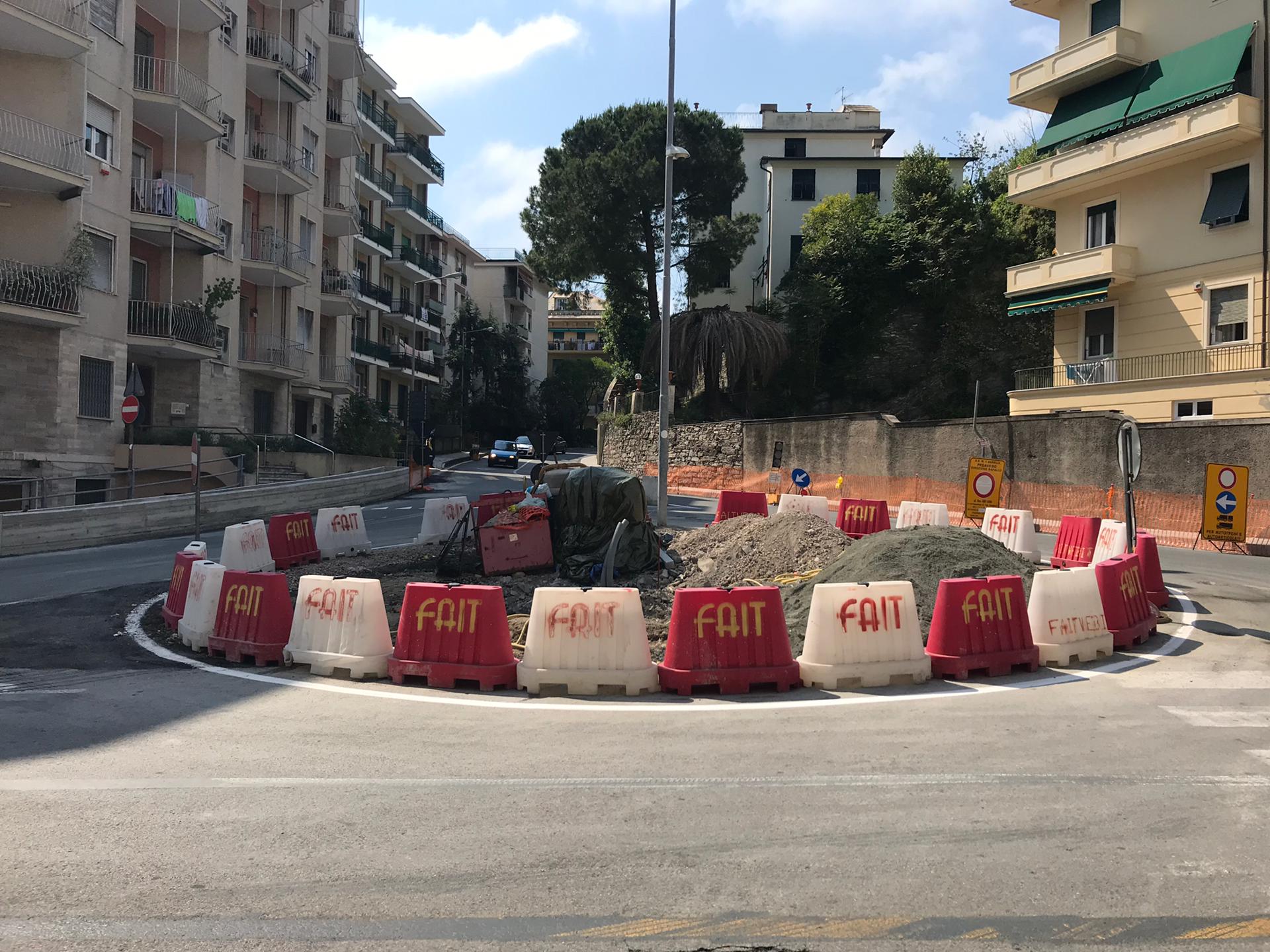Chiavari. Con la modalità provvisoria dei new jersey, è allestita la nuova rotonda, voluta dall’amministrazione di Chiavari all’incrocio tra l’Aurelia, via Prandina e corso Genova.