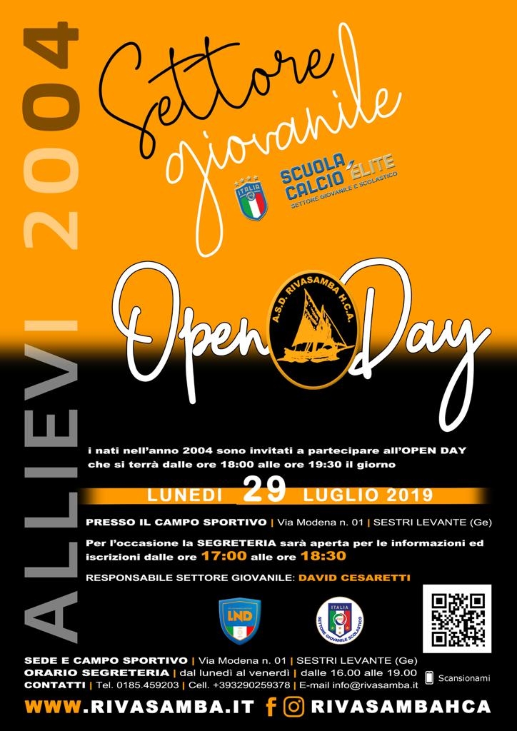 Sestri Levante. Open day per il settore giovanile del Rivasamba, domani, lunedì 29 luglio, dalle ore 18, al campo sportivo di via Modena a Sestri Levante.