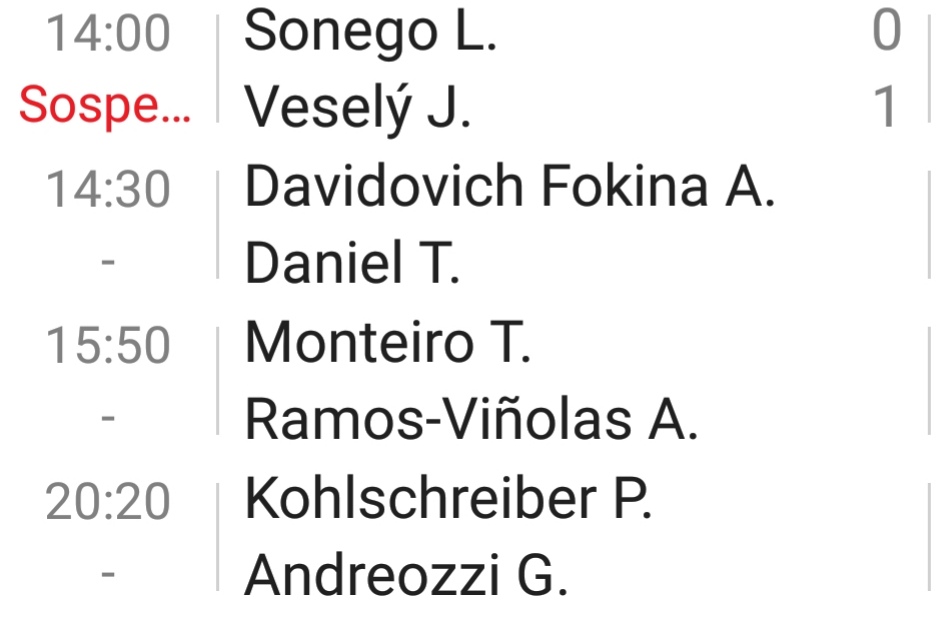 Il Sonego di questa sera non era centrato come al solito. Buono il rendimento, invece, del ceko 26enne, Jiri Vesely che nel suo personale palmares nel luglio scorso, a Wimbledon, ha battuto il 22enne, Alexander Zverev (numero 6 del mondo). L’incontro fra Sonego e Vesely, valido come ottavo di finale, proseguirà, tempo permettendo, venerdì alle 14.