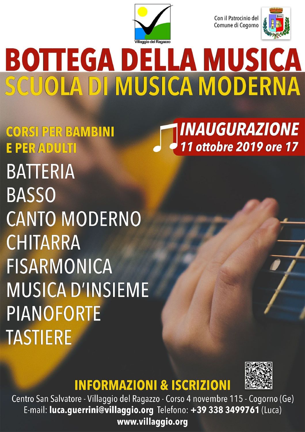 Cogorno. Venerdì 11 ottobre, dalle ore 17, nella sala Open Music del Centro San Salvatore a Cogorno, si terrà l’inaugurazione dei corsi 2019/20 della Bottega della Musica, scuola di musica moderna del Villaggio del Ragazzo, nata nel 1999 come scuola e laboratorio di musica, la cui peculiarità è quella di differire dalle realtà tradizionali già esistenti sul territorio per ciò che riguarda l’orientamento, decisamente indirizzato verso i molteplici aspetti dei linguaggi musicali del nostro tempo: pop, rock, jazz, blues, fusion, world.