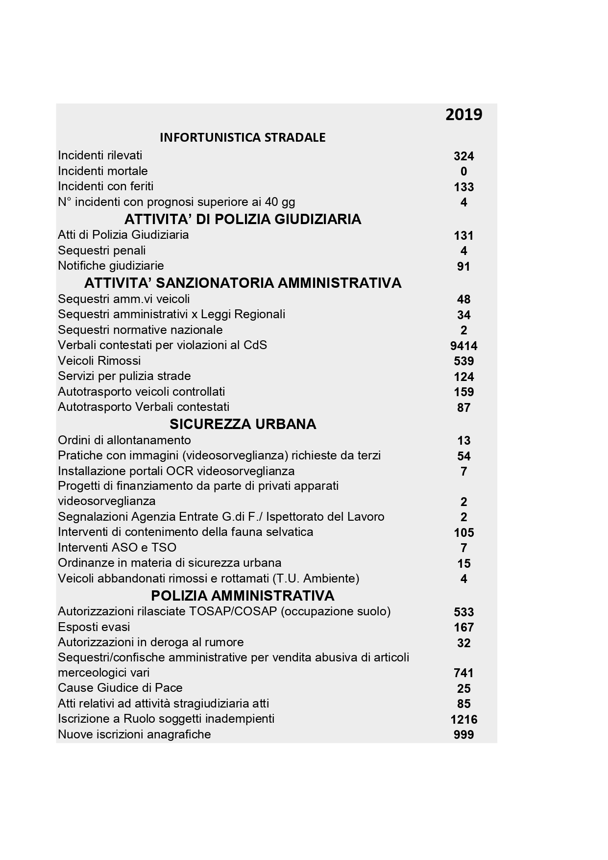 Al termine della funzione religiosa, i partecipanti si sono trasferiti nella nella sala consiliare del municipio per la lettura della relazione dell’attività svolta dal Comando di Polizia Municipale nel 2019.