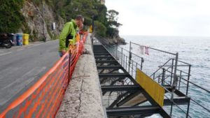 Santa Margherita. Si lavora alle scalette di accesso alle spiagge, a Santa Margherita. Quella per la Bau Bau Beach, per la verità non sarà disponibile