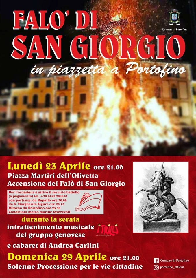 Ore 21 in punto. Il Campanile di Divo Martino suona il primo rintocco e il Sindaco di Portofino Matteo Viacava – insieme ai bambini del Borgo – accende la fiaccola per dare vita al falò che, tradizionalmente, apre le celebrazioni in onore di San Giorgio, Santo Patrono del Borgo. Insieme al Primo Cittadino portofinese […]