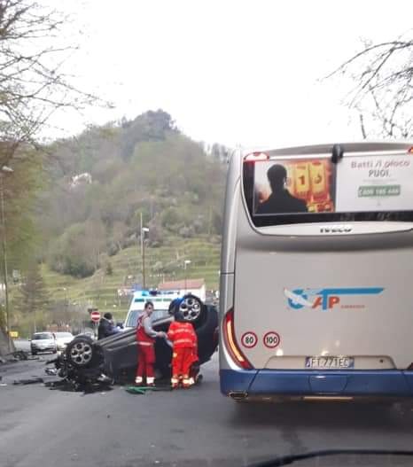 Chiavari. Incidente stradale a Ferriere, intorno alle 7,45. Una macchina (nella foto) , per cause in corso di accertamento, si è capottata. Secondo le prime indicazioni, l’automobilista, subito soccorsa da una squadra di volontari, è stata trasferita all’ospedale san Martino di Genova.