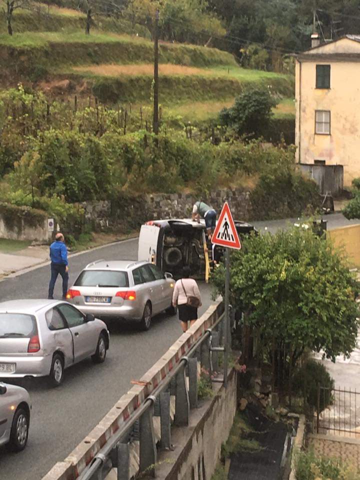 Auto ribaltata a Carasco