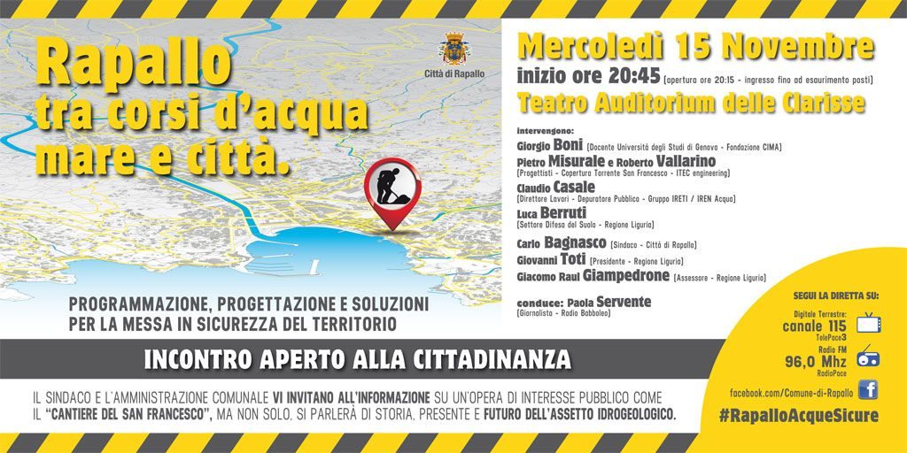 Rapallo. Si intitola “Rapallo tra corsi d’acqua, mare e città. Programmazione, progettazione e soluzioni per la messa in sicurezza del territorio” ed è l’evento organizzato dal Comune di Rapallo per informare la popolazione circa la realizzazione dei lavori per il rifacimento della copertura sul torrente San Francesco ma anche riguardo altri interventi per la messa […]