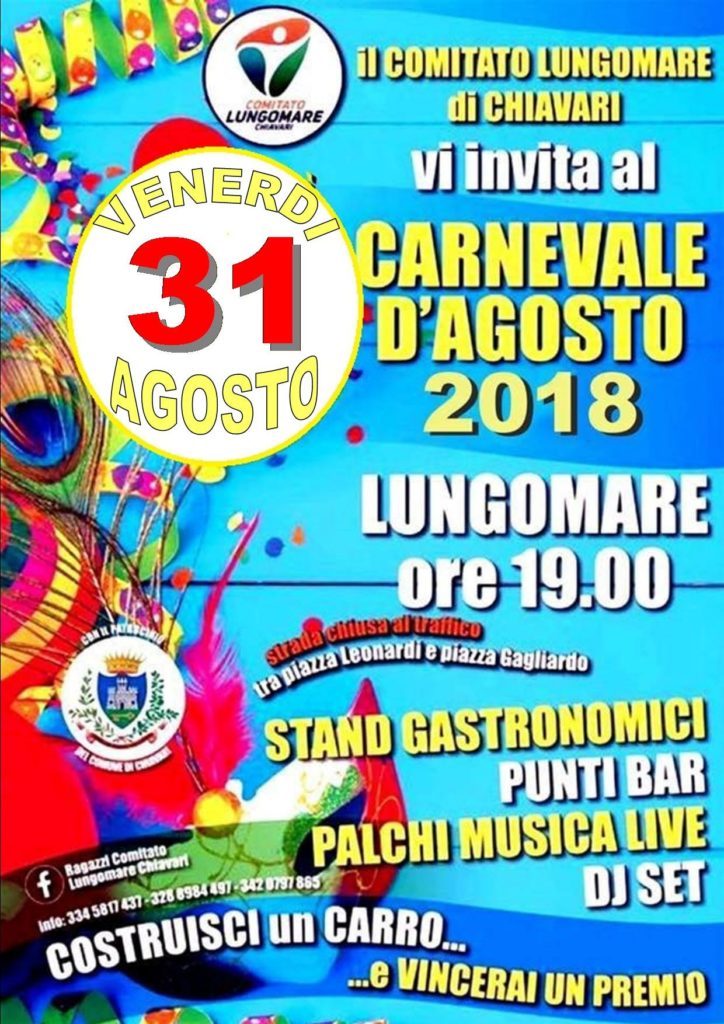 Chiavari. Si recupera venerdì sera il Carnevale d’agosto organizzato dal Comitato Lungomare di Chiavari. Già dalle 8 di venerdì e fino al termine della manifestazione, è vietata la sosta, con rimozione forzata, a tutti i veicoli, in corso Valparaiso, tra i civici 7 e 17. Dalle 17 e sino al termine della manifestazione, sosta vietata, con […]